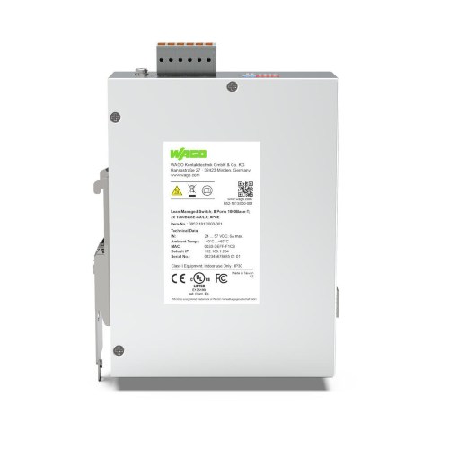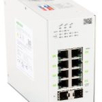 The configurable 852-1813/000-001 Industrial ETHERNET Switch features eight 10/100/1000BASE-T ports that all support Power over Ethernet (PoE+) at 30 W, and has two 100BASE-FX/1000BASE-LX/SX/ZX SFP ports (SFP modules are available as an option).